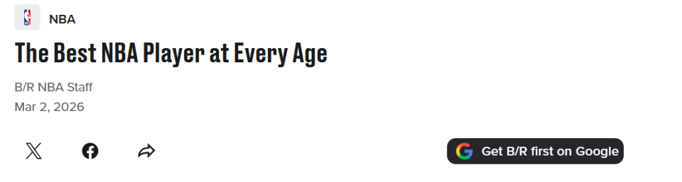 在常规赛进入冲刺阶段之际,美媒《BR》根据本赛季最新表现评选出NBA现役各年龄最佳球员名单,其中火箭申京入选,杜兰特不敌库里落选。